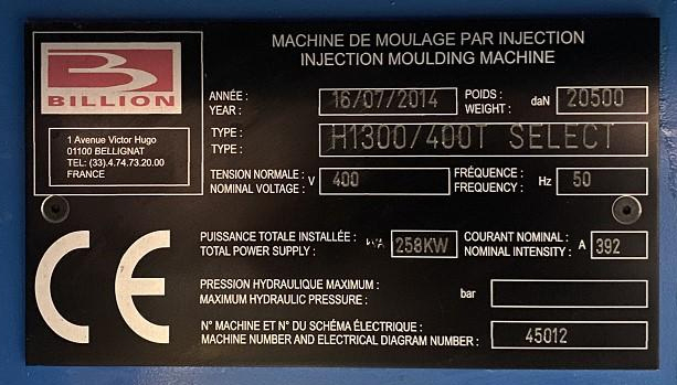 Machine : BILLION SELECT 400T